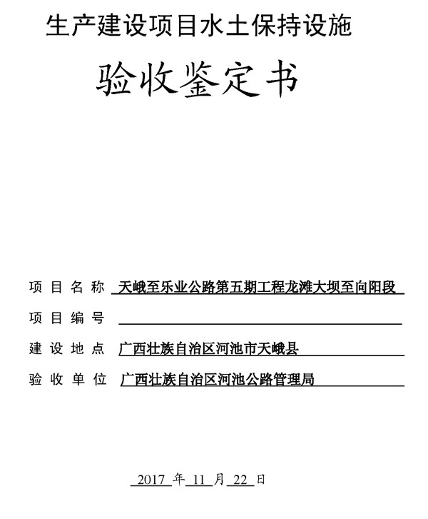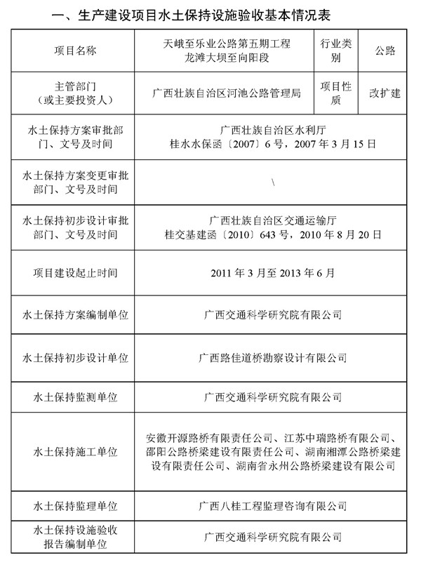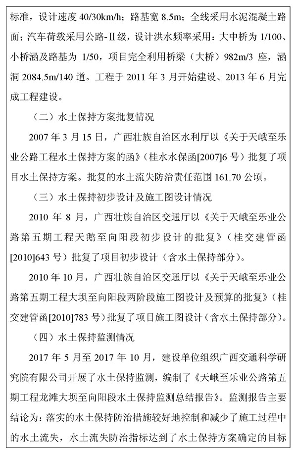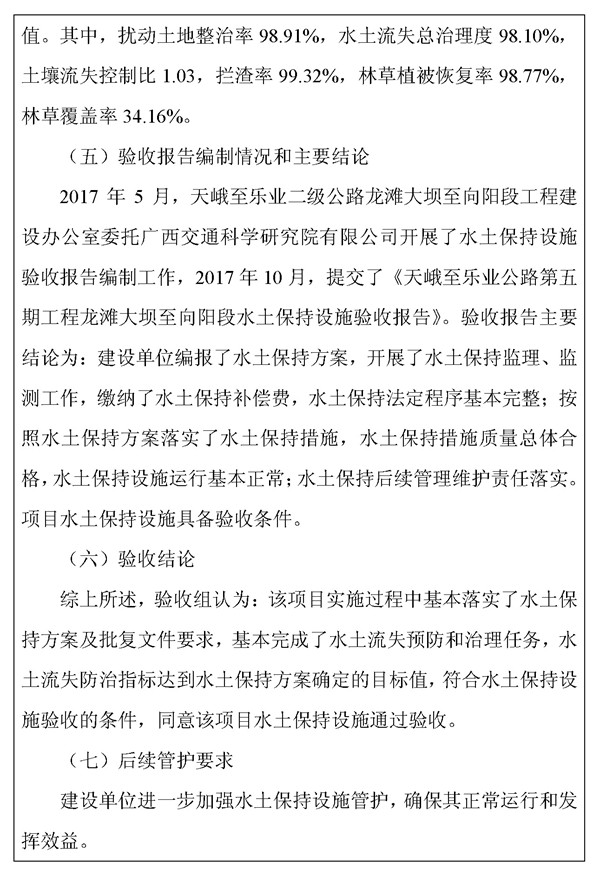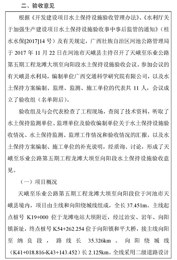 天峨至乐业公路第五期工程龙滩大坝至向阳段水土保持设施验收公示