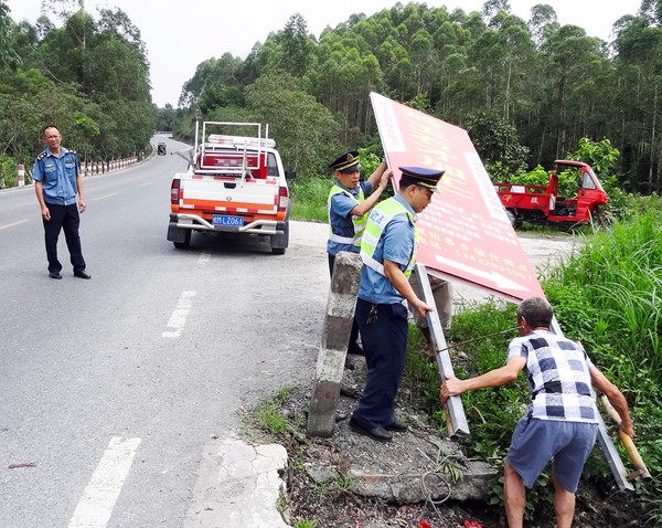 为了以美好的路容路貌迎接环江毛南族自治县成立三十周年华诞,近段,环江路政执法大队对辖区国道干线公路开展路域环境大整治行动。