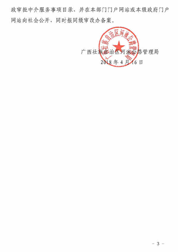 河池公路管理局关于印发河池公路管理局保留为行政审批必要条件的中介服务事项目录的通知