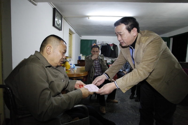图为2月4日该局局长唐祥明在晚饭过后来到困难职工廖洪华家慰问的情景。