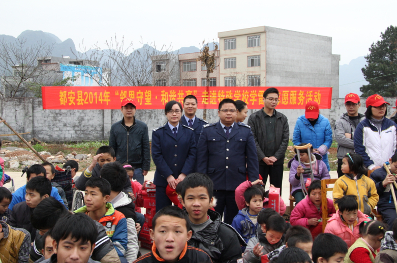 四是开展关爱残疾人志愿服务。与社区残疾人结成“一帮一”帮扶关系,并照顾安排1名社区残疾人的待业儿子到罗城收费站工作。慰问都安县特殊教育学校的学生,捐赠牛奶、水果、文具等慰问品。