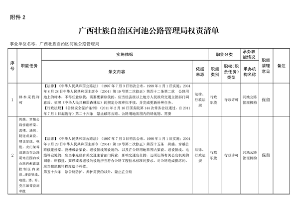 河池公路管理局行政权力事项清理汇...