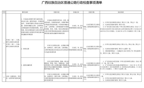 广西壮族自治区普通公路行政检查事项清单广西壮族自治区普通公路行政检查事项清单