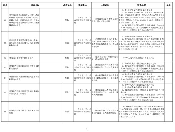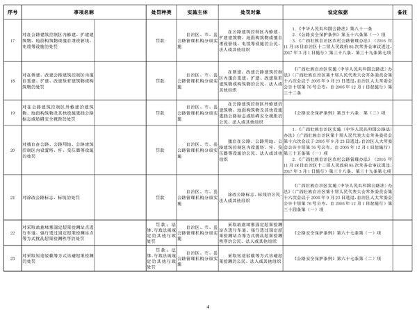 广西壮族自治区普通公路行政处罚事项清单广西壮族自治区普通公路行政处罚事项清单