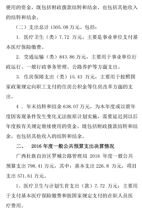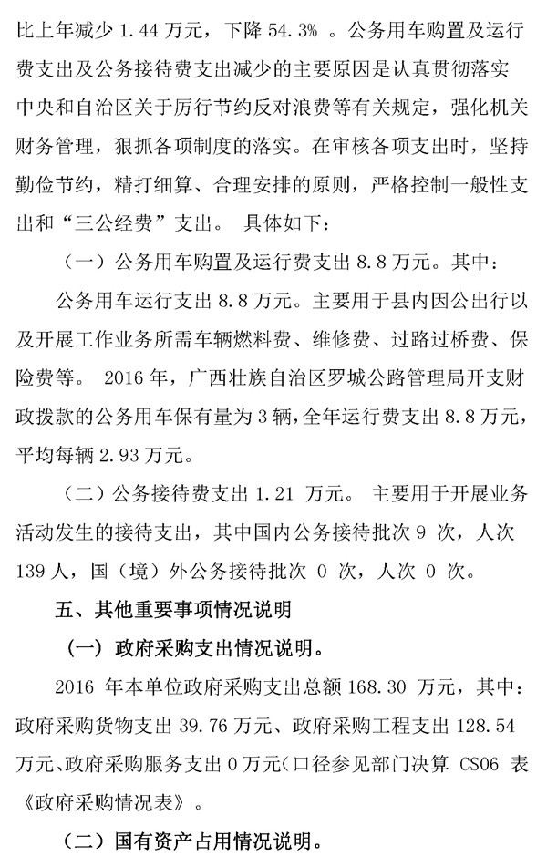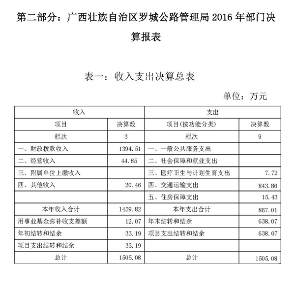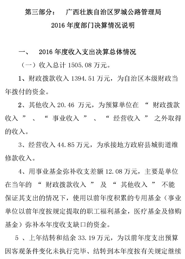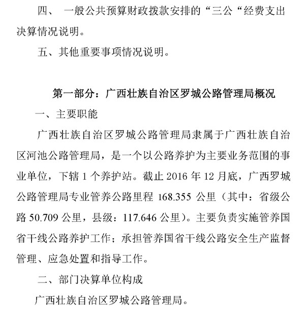 罗城公路管理局2016年决算公开