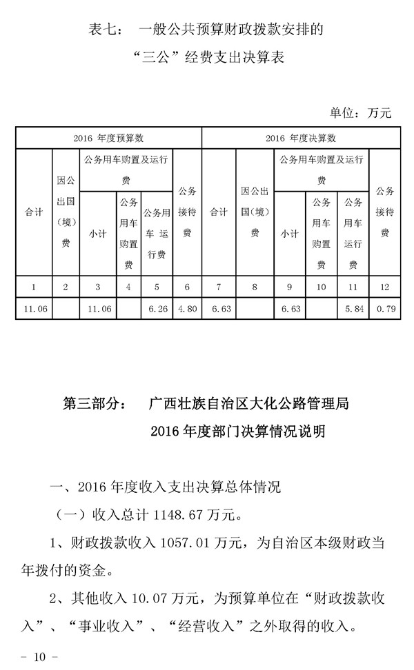 广西壮族自治区大化公路管理局2016年决算公开