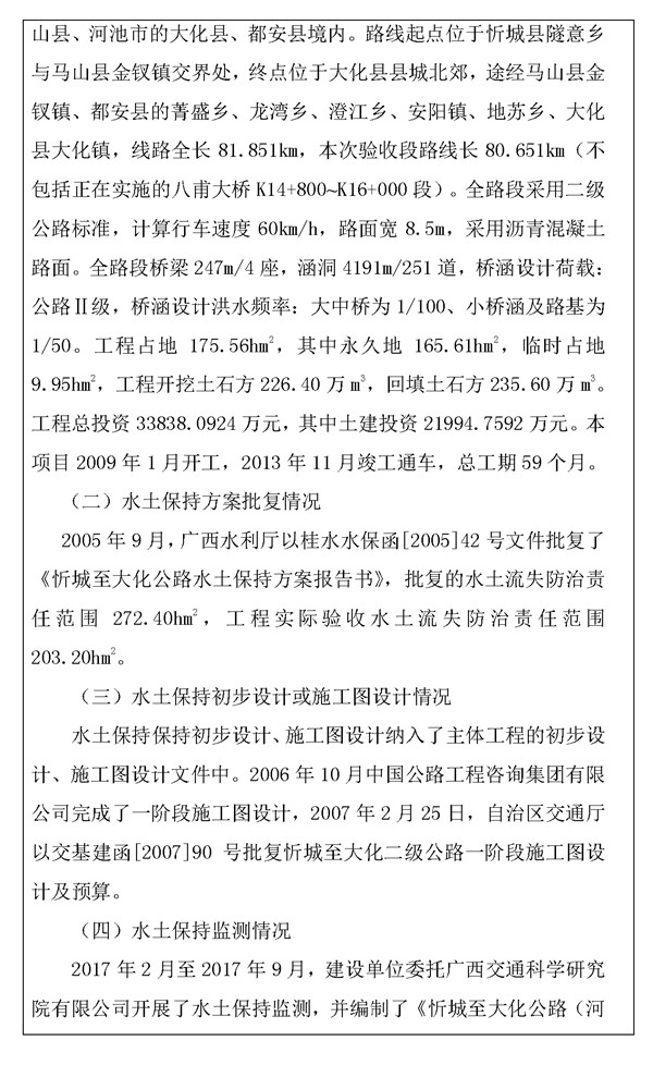 忻城至大化公路(河池南宁段)水土保持设施验收公示